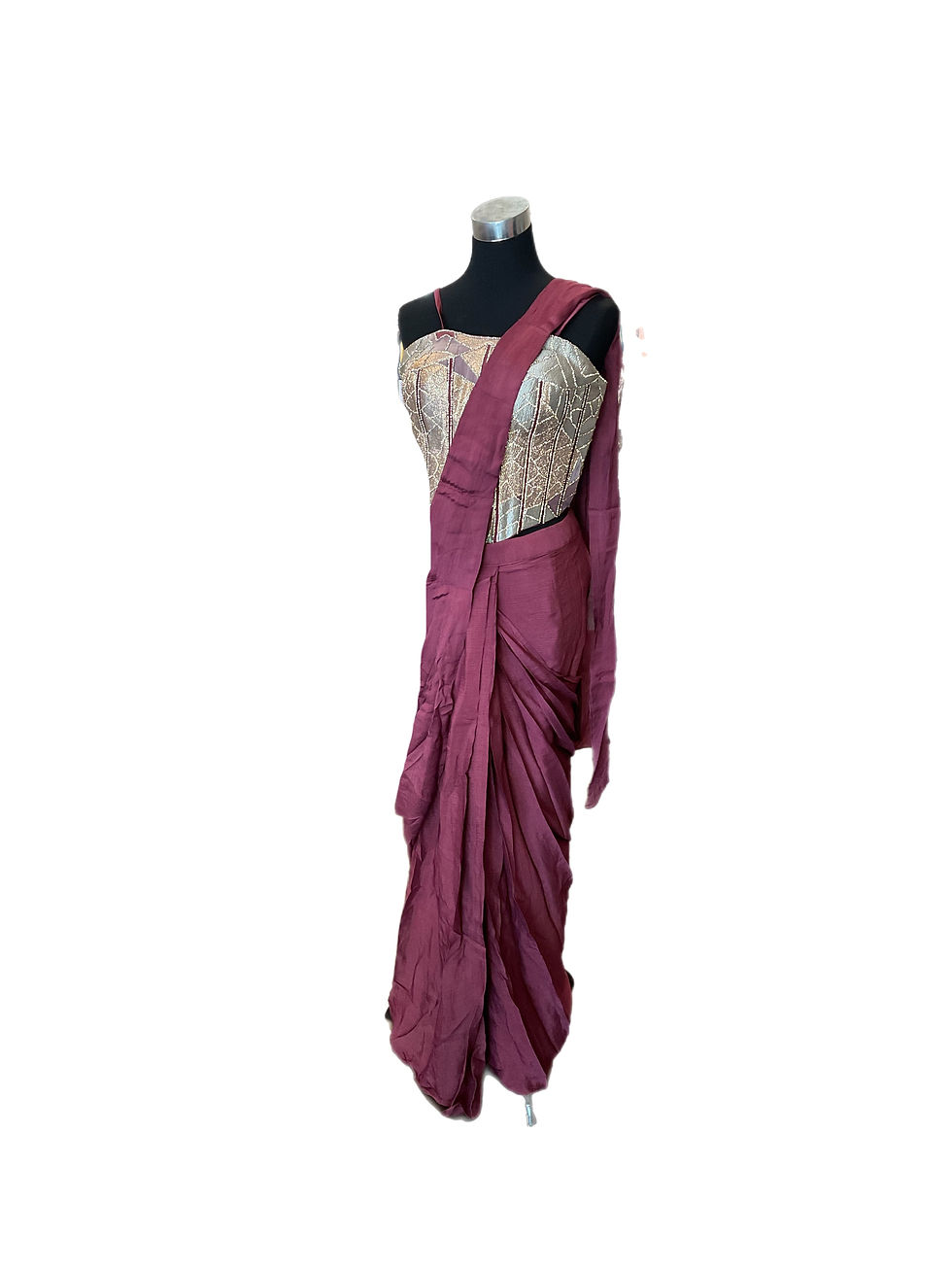 Pretty Sequins Plazzo Indowestern Set in Wine Color