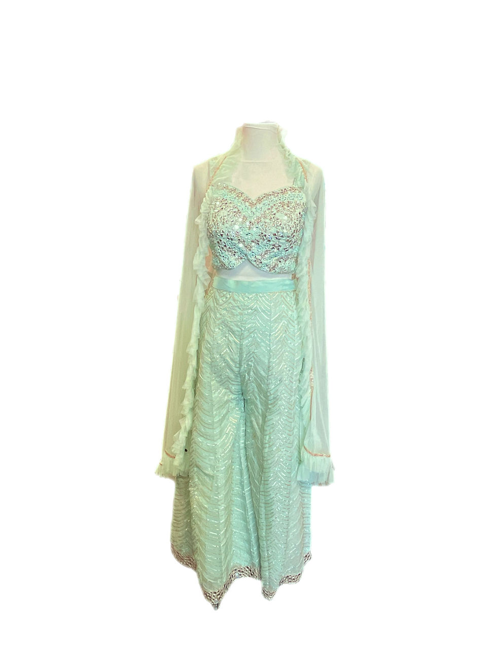 Georgette Embroidered Plazzo Crop Top With Jacket