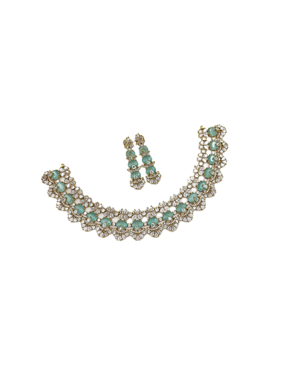 Classic Mint Green Matt Gold Polish Necklace Set