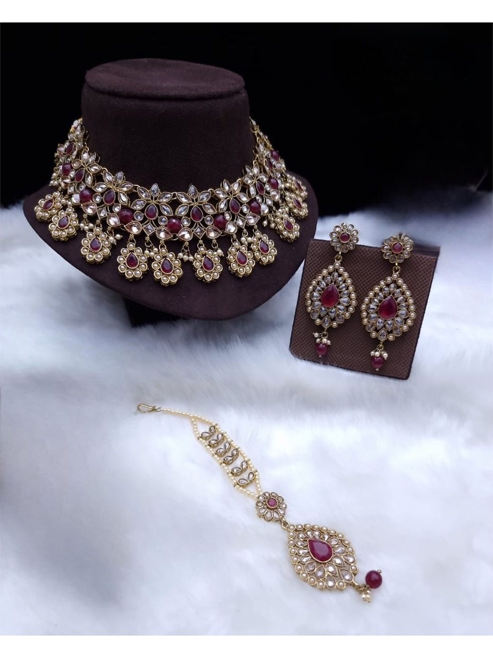Gorgeous AD Stones Pink-Green Choker Necklace