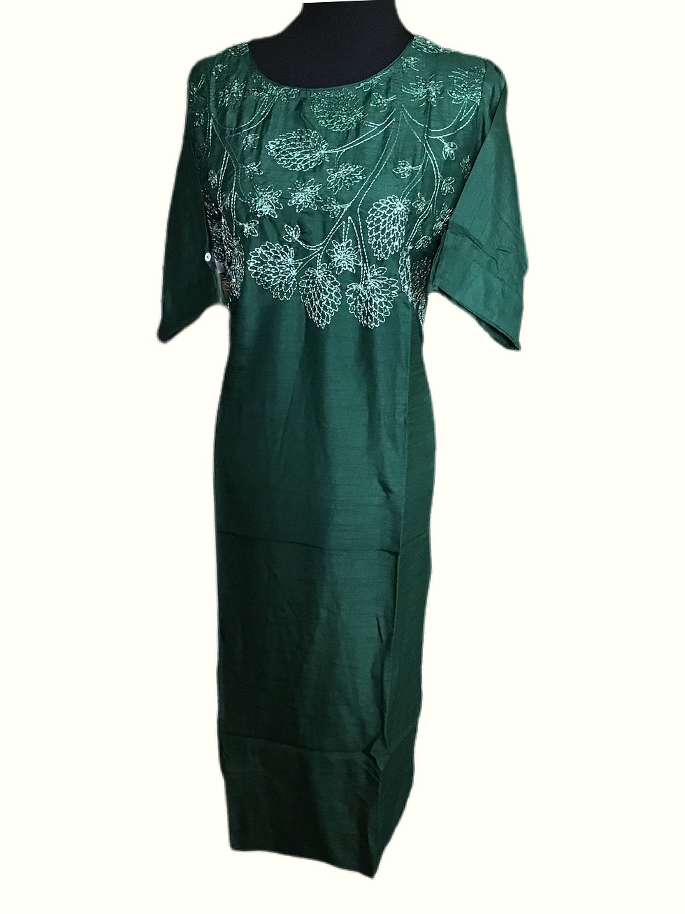 Beautiful Plus Size Green Embroidery Cotton Kurti