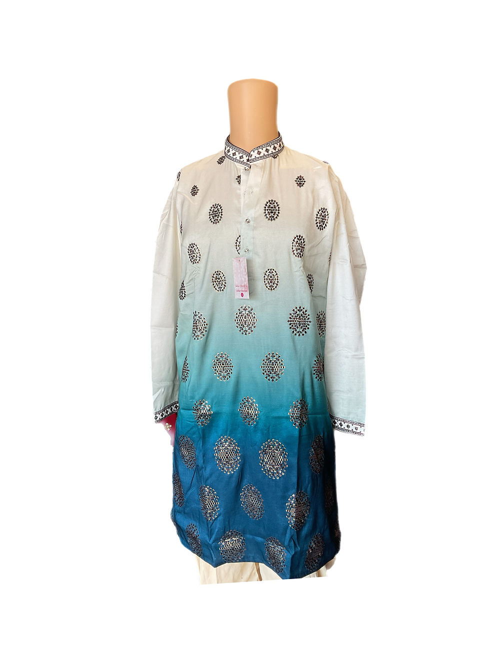 This Exquisite and charming Kurta pajama gives you Best Ethnic look with embroidery, sequins work. Perfect for any Formal or Wedding occasion. It's light fabric with nice work